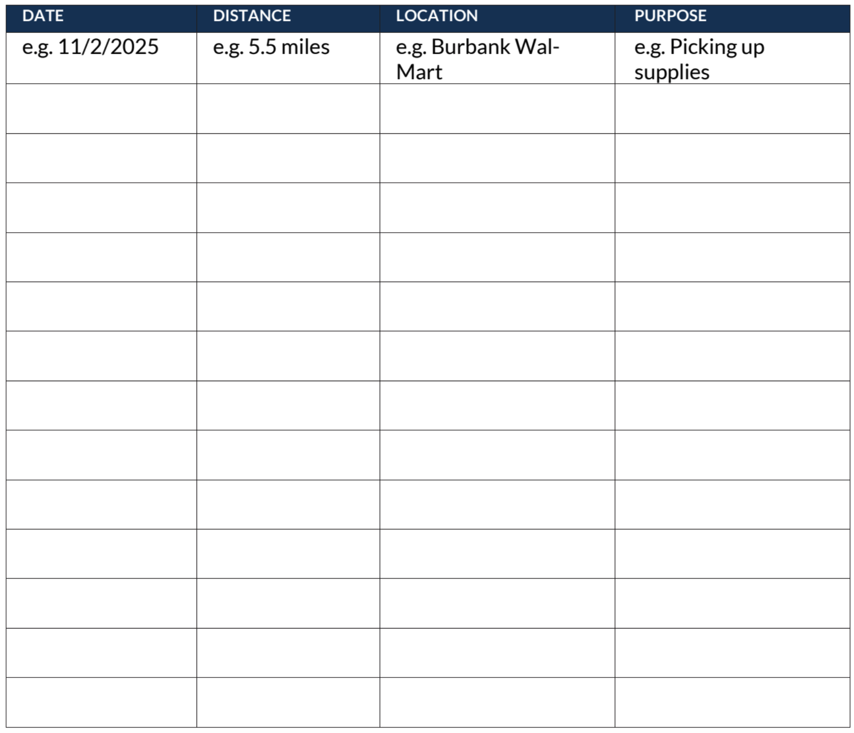 Regardless of the method you use, you’ll need a simple log recording the number of miles you drove your car for business purposes with: