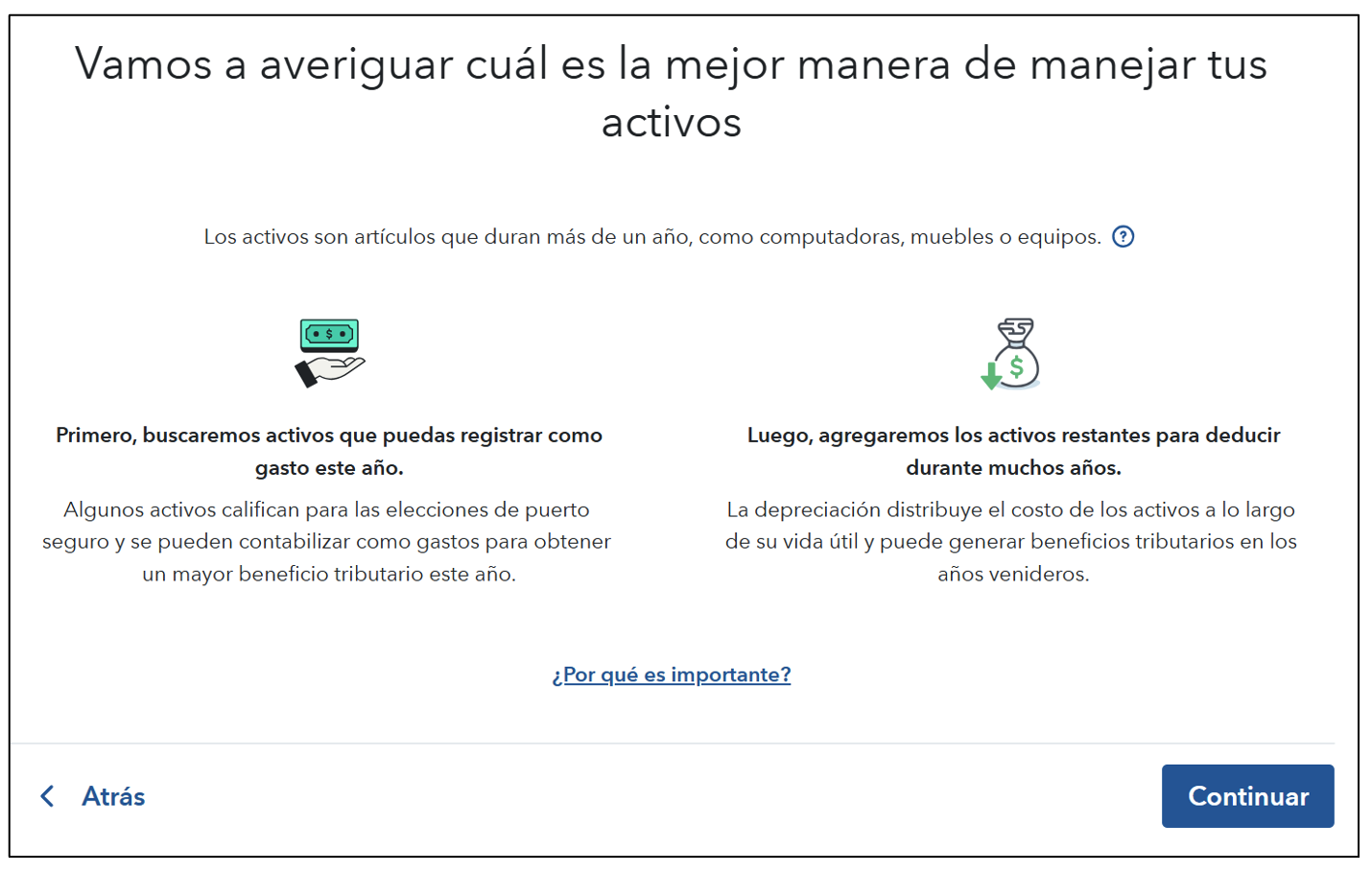 A continuación, deberá responder a algunas preguntas sobre sus activos, una a la vez.